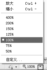 利用浏览器右下角的缩放功能,单击倒三角按钮,可以根据自己的需要更改显示的百分比,进而更改字体的大小,如图3-4所示(100%是原始大小)。