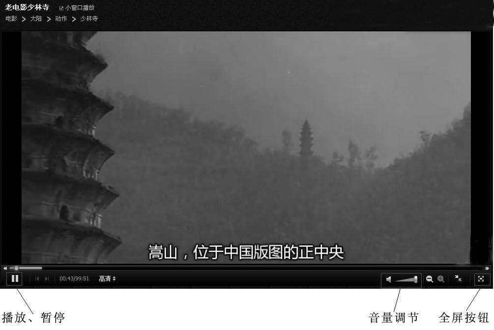 全屏按钮: 单击该 按钮即可全屏观看,再次单击可退出全屏。
