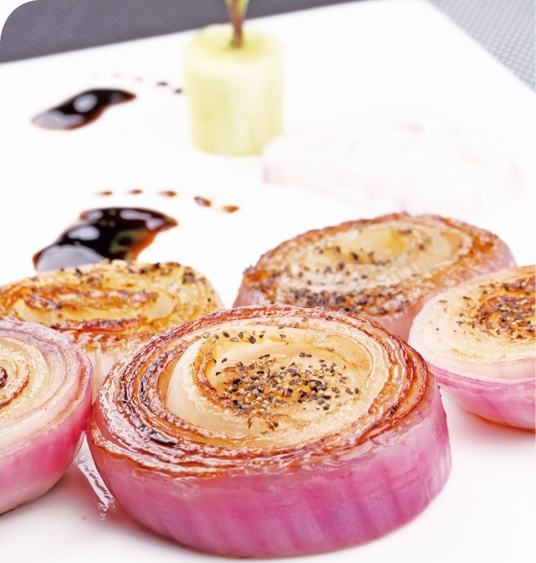 3 烤箱预热到180℃,将洋葱烤至淡黄色透明状。