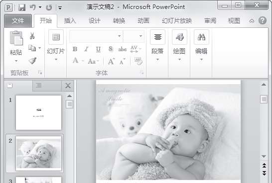 此时,PowerPoint会打开新窗口,并基于所选的图片创建演示文稿。