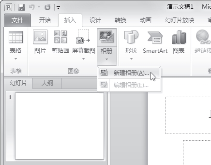 除了创建空白演示文稿和根据模板创建新的演示文稿之外,还可以通过相册创建新的演示文稿,具体操作方法如下。