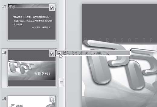图标,单击该图标,在弹出的列表中勾选“已在该位置插入所有幻灯片”复选框。