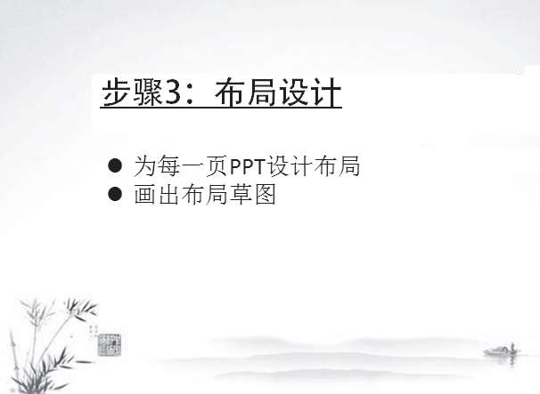 在完成逻辑设计之后,接下来就应对演示文稿进行布局设计。首先最好能够在草稿纸上画出布局草图,初步确定每一页幻灯片的主题及内容,以及每一页的布局安排,用什么方式进行展示,纯文字、图片、图形等。