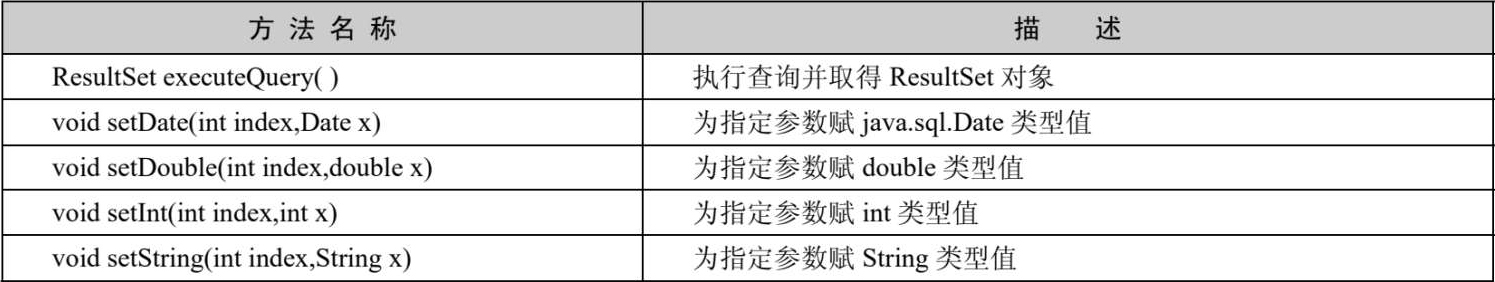 表4-4 PreparedStatement接口的常用方法