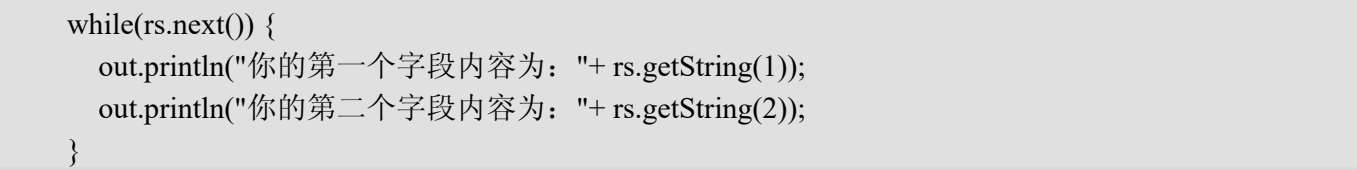 (6)访问结果记录集ResultSet对象。例如: