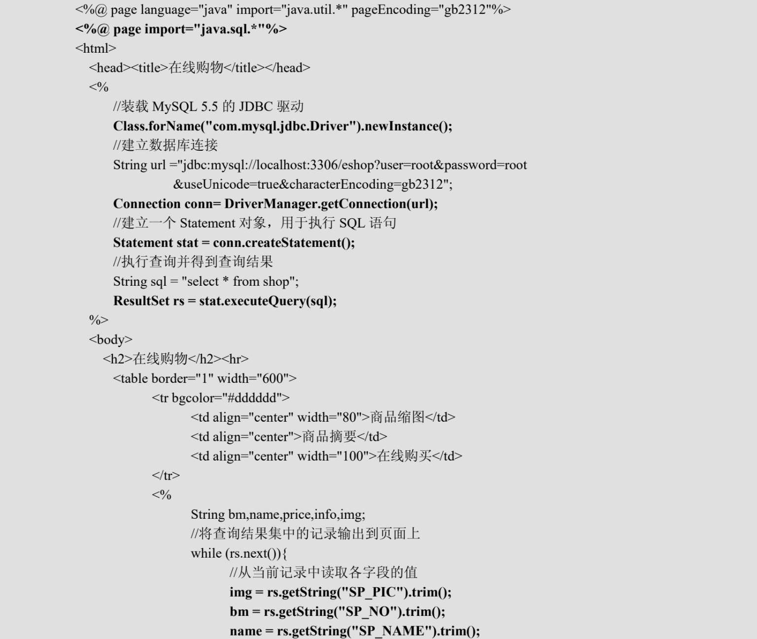 例程4-1 商品浏览页面index.jsp