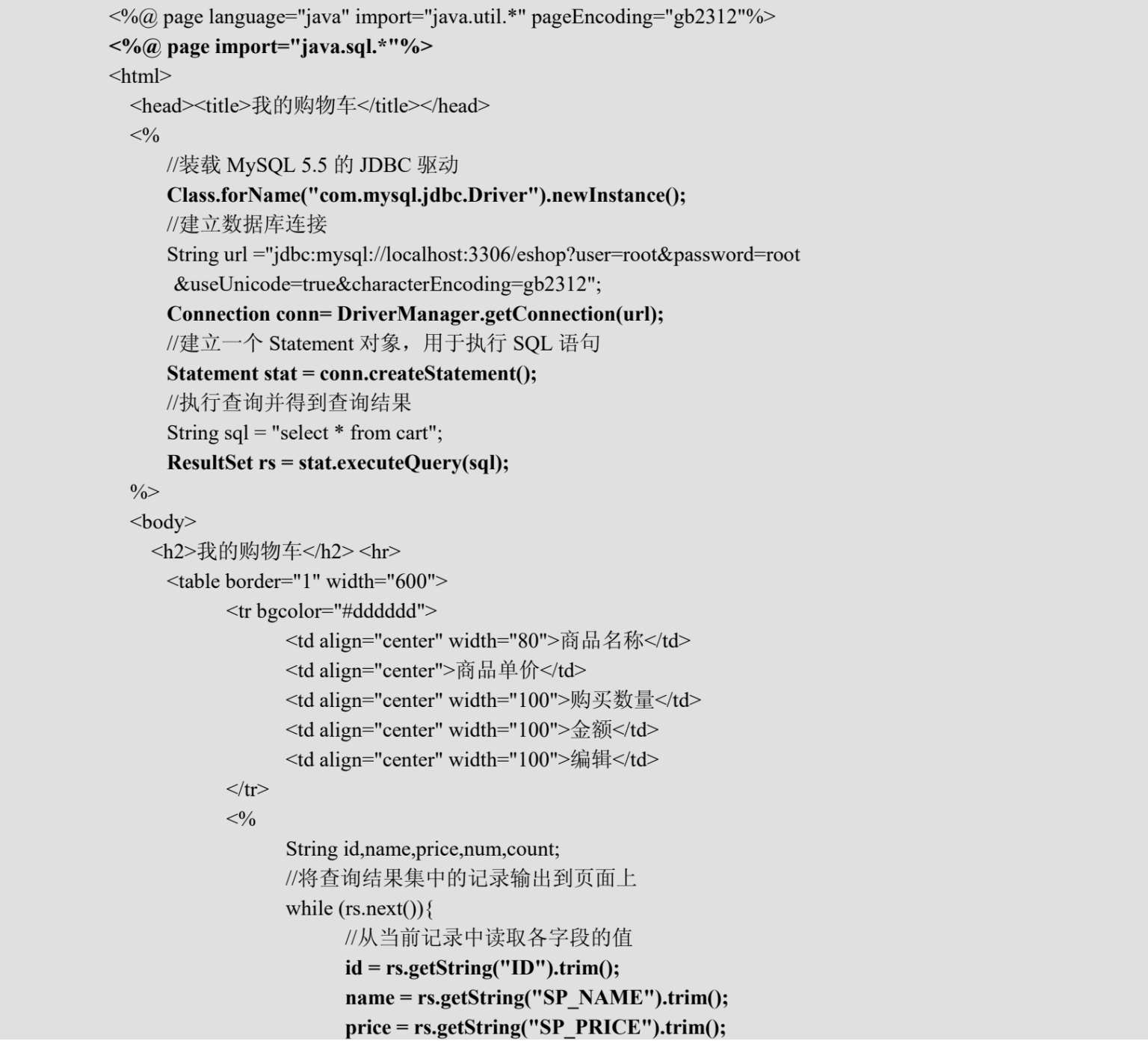例程4-2 购物车页面cart.jsp