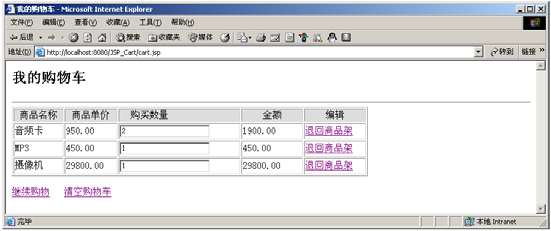 图4-3 cart.jsp的运行效果