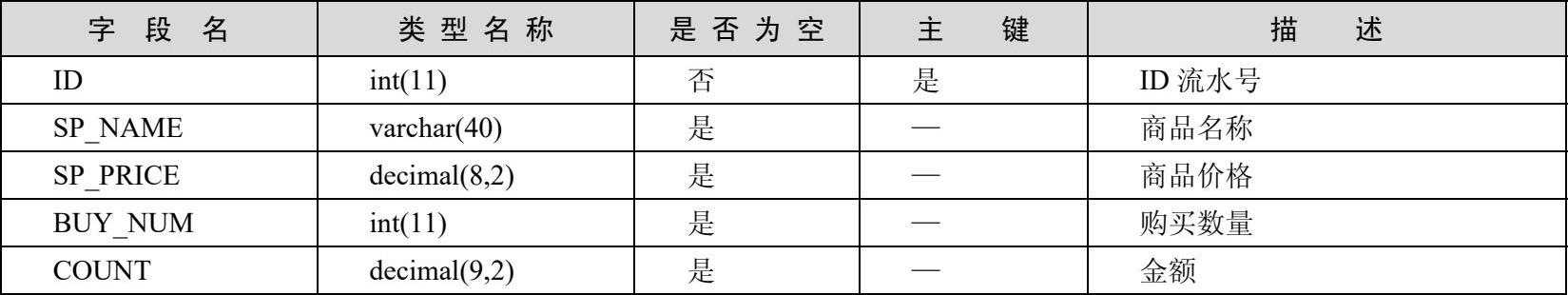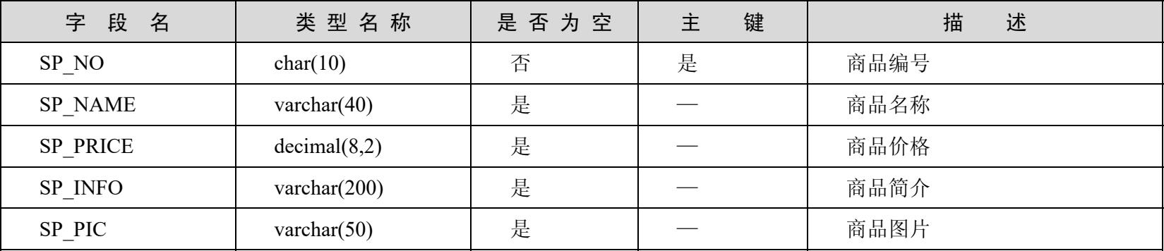 用于存放所有商品数据的商品架shop表见表4-6。