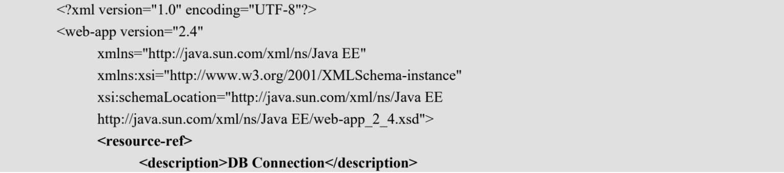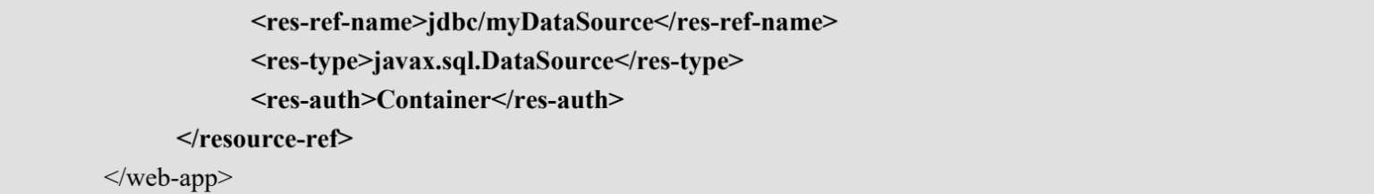 (3)在web.xml中配置对数据源连接池的引用,例如: