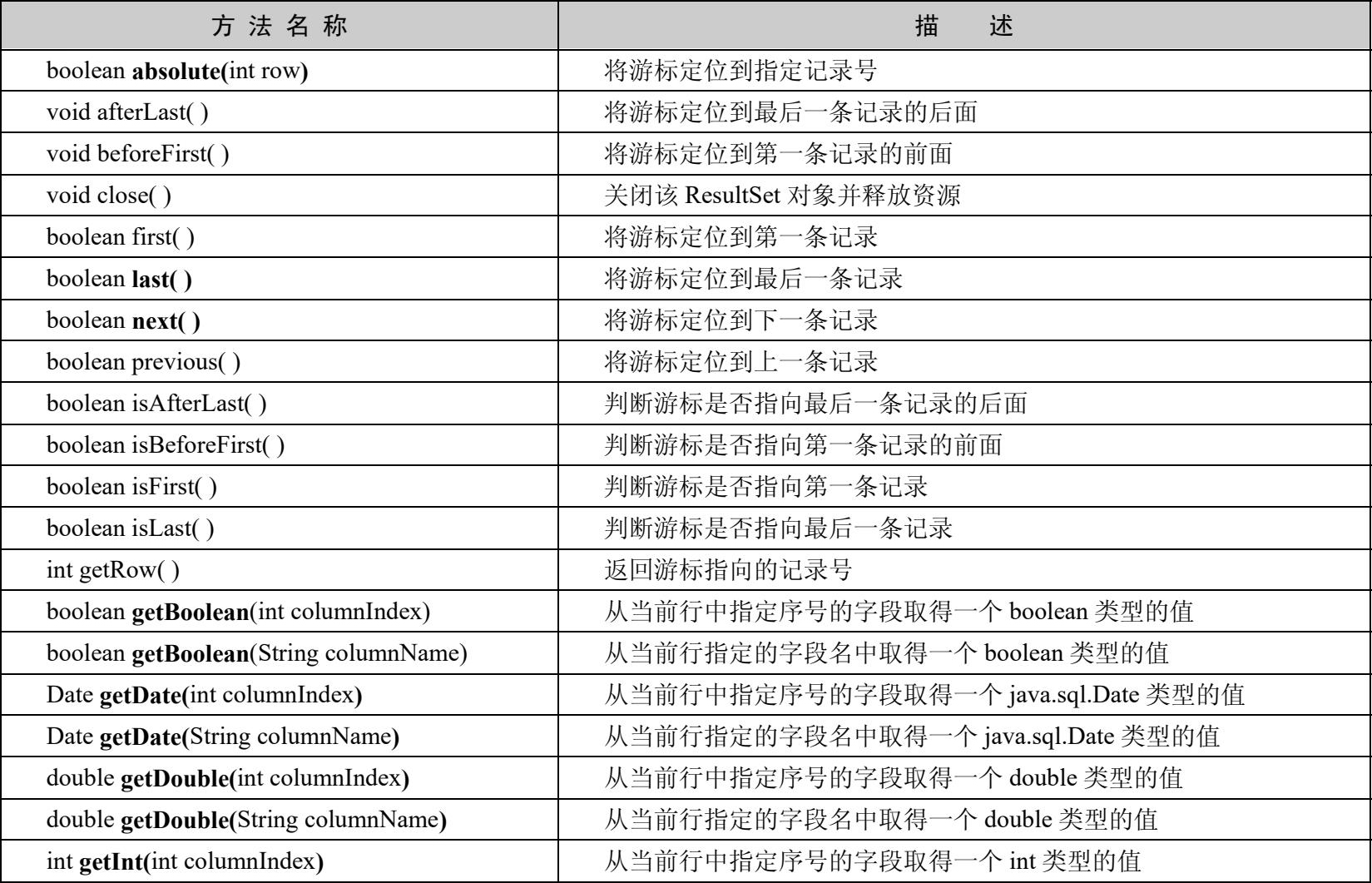 表4-5 ResultSet接口的常用方法