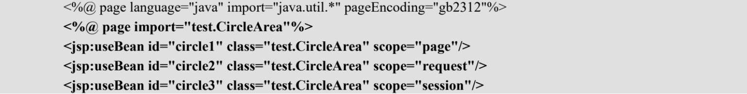 <jsp:useBean id='circle1' class='test.CircleArea' scope='page'/>