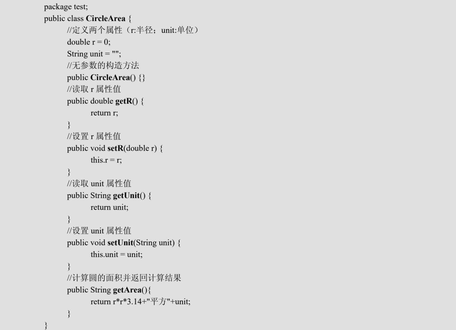 例如,定义一个名为CircleArea(见例程4-4)的JavaBean用于封装圆面积的计算逻辑,以后凡是需要用到圆面积计算的地方均可调用该JavaBean来完成,实现了代码的重用。