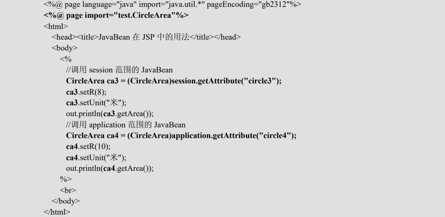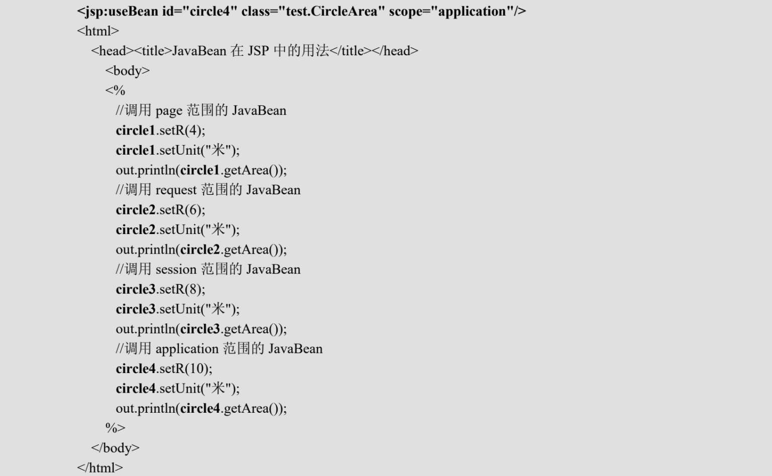 <jsp:useBean id='circle2' class='test.CircleArea' scope='request'/>