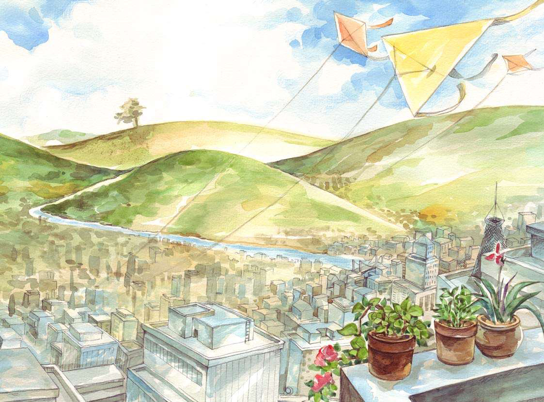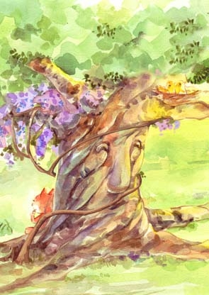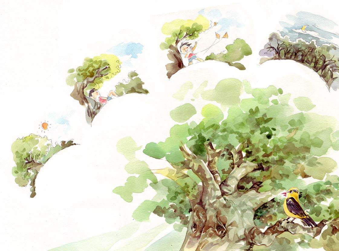 日子一天一天地过去,黄鹂的宝宝们渐渐地长大了,紫藤萝开出了一串串漂亮的花朵。可是,树爷爷有时候望着光秃秃的山坡,还是很伤心。