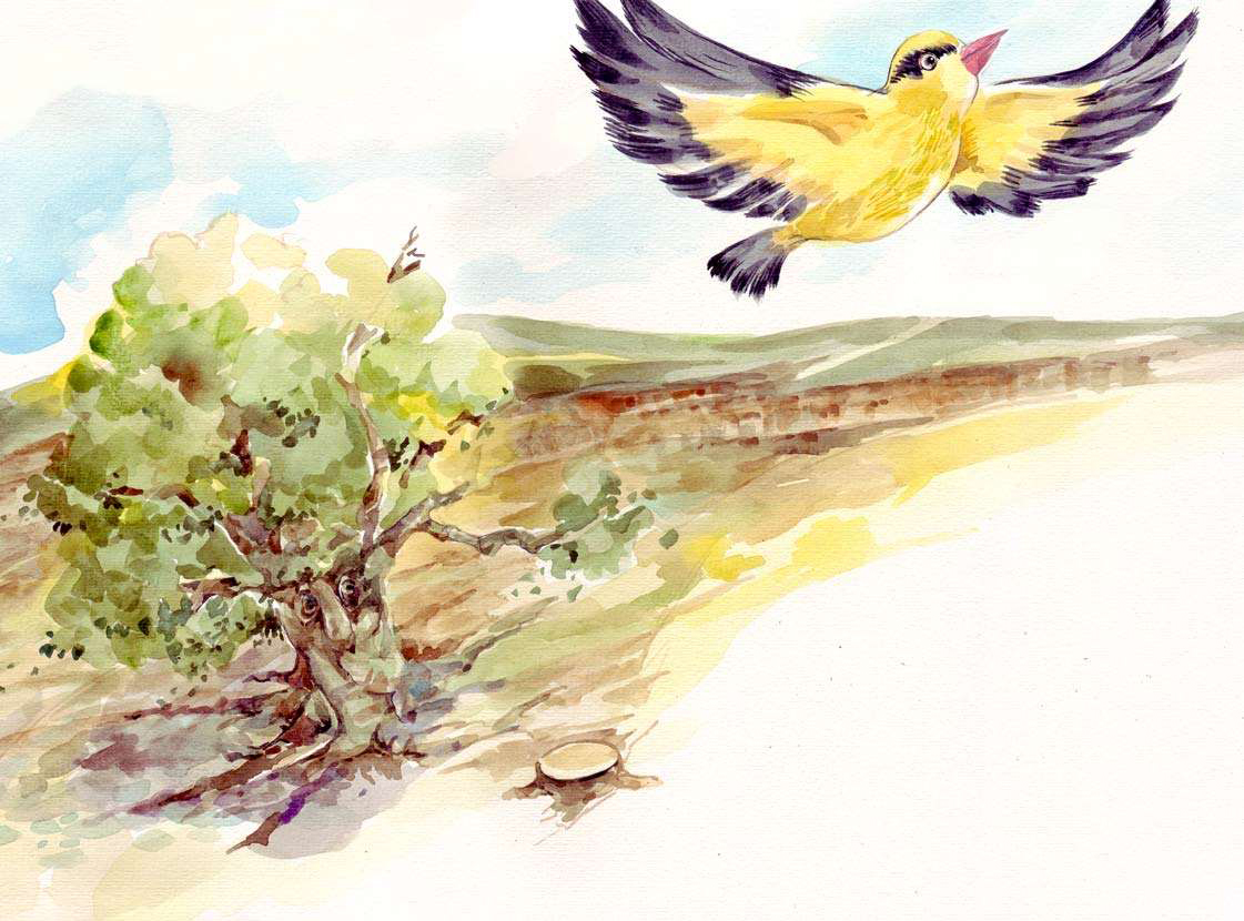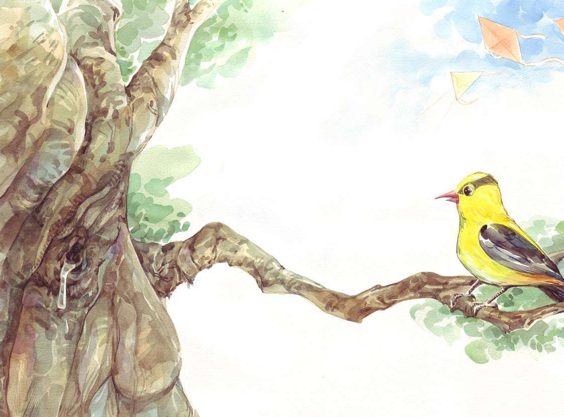 黄鹂安慰树爷爷说:“树爷爷,您别着急了,一定会有办法的。”说完,她轻巧地飞走了。
