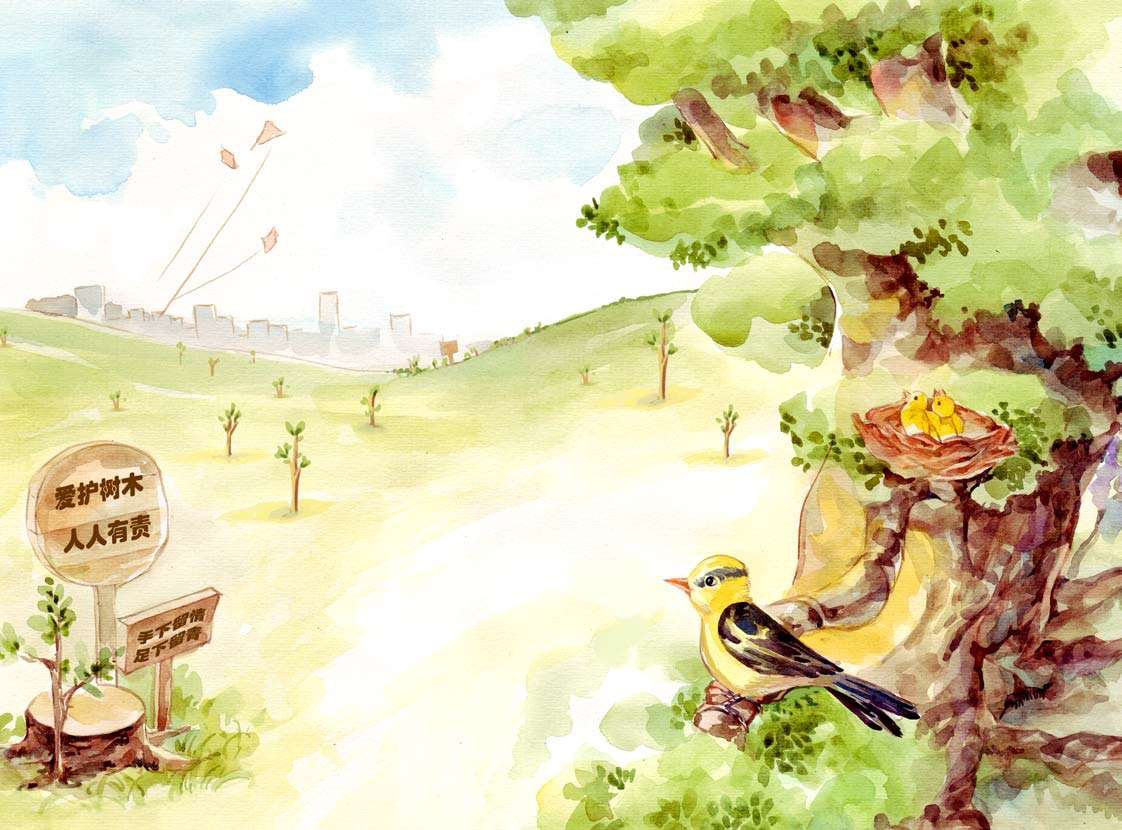 看着渐渐长大的小树苗,黄鹂开心地对树爷爷说:“树爷爷,您看,人类还是树木的好朋友!”“是啊,是啊。”树爷爷甜甜地笑了。