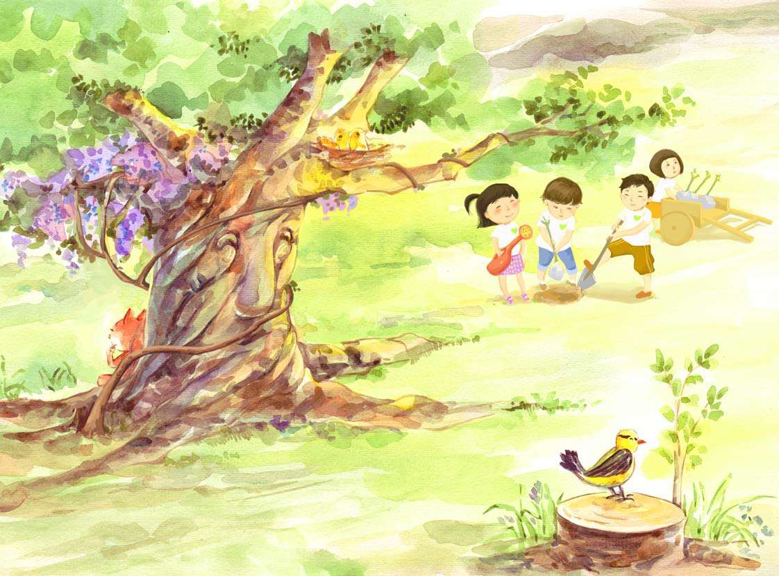 树爷爷摇了摇头:“土地要是缺少了树木,就没有办法留住水分;没有了树木,人类也无法快乐地生活下去。”