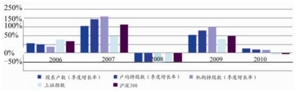 图2-28是单个指标在不同年份的收益率情况,从图中可以看出,机构持股比例(增长率)这个指标在2007年和2009年的牛市中均超越其他指标,这可能是因为在牛市的情况下,机构的力量造成了比较大的趋势,而在熊市中,机构持股不卖,使得其也容易遭到更大的损失。