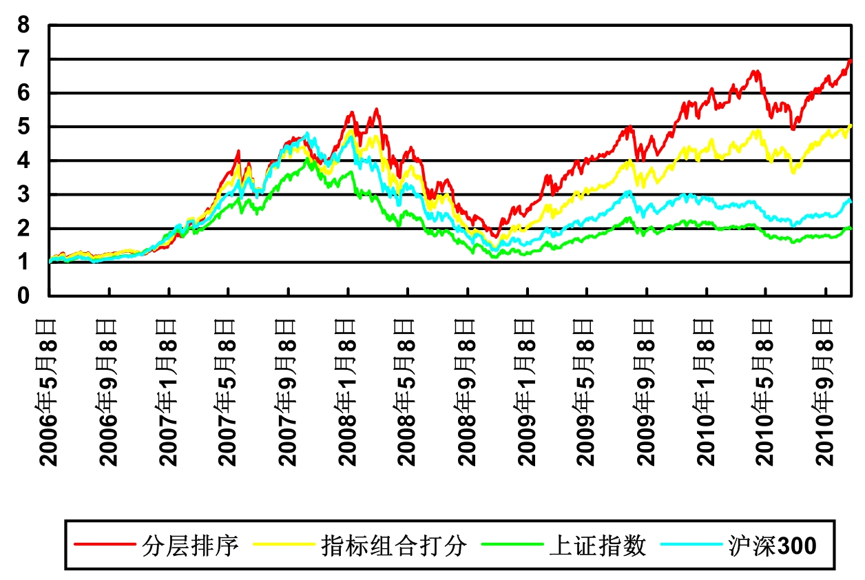 图2-30 筹码选股中分层排序和指标组合打分方法净值走势