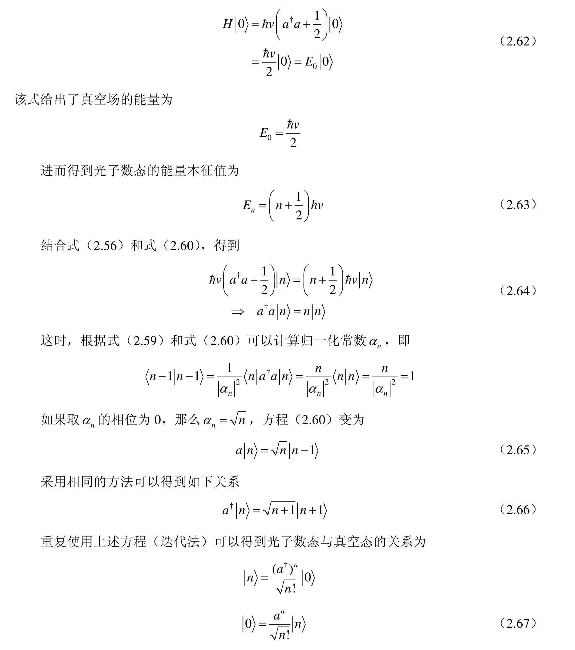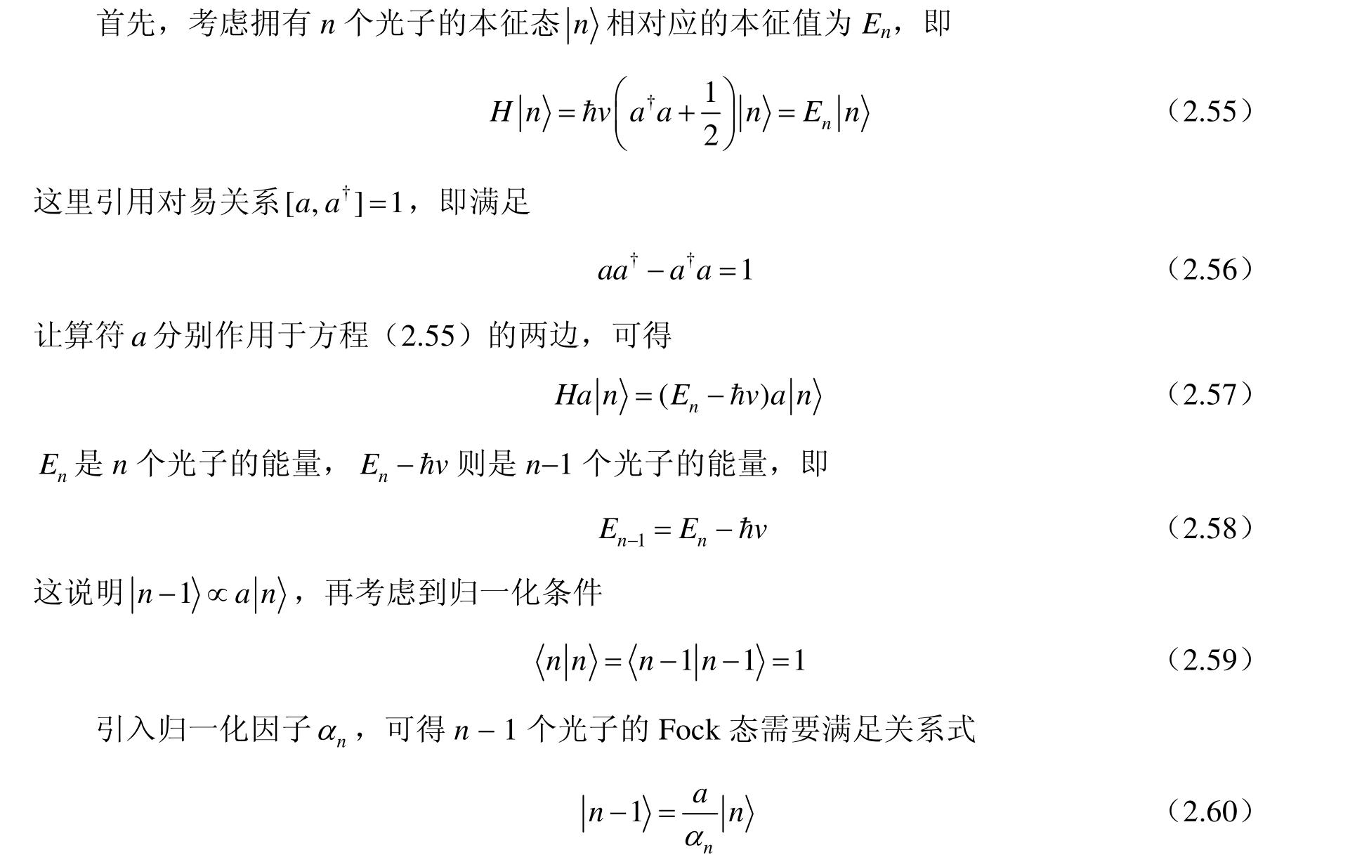 光子数态也称为Fock态,它们构成一组正交归一的完备基,可用来描述任意的光场量子态。这里为了方便计算,考虑算符a和a † 只相对于频率为v的单模电磁场。