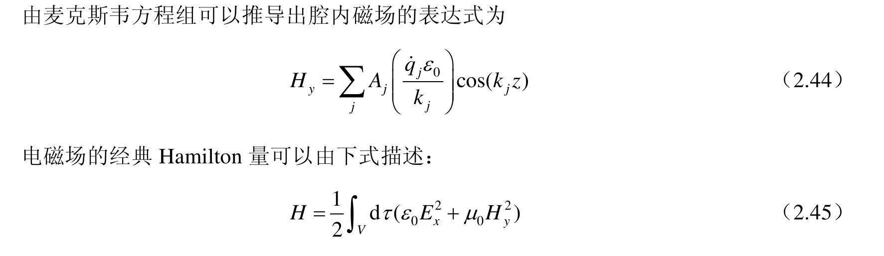 下面将电磁场在谐振腔中按简正模展开,将经典电磁场的能量写成与位置和动量有关的Hamilton量,从而引入量子力学理论。