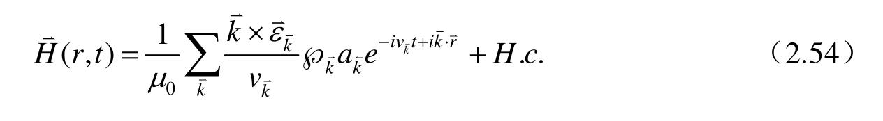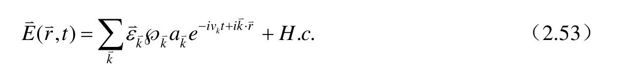 其中,ε k 是单位偏振矢量,H.c.表示厄米共轭。因此,所谓电磁场的量子化就是在数学处理时用产生和湮灭算符来表示场的正频部分和副频部分的幅值,并给出其对易关系。产生和湮灭算符的乘积在本质上代表了光子数。