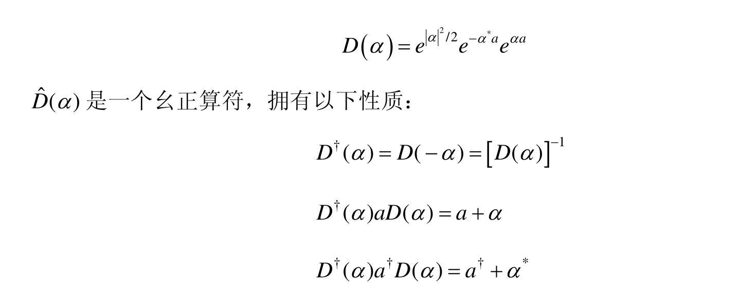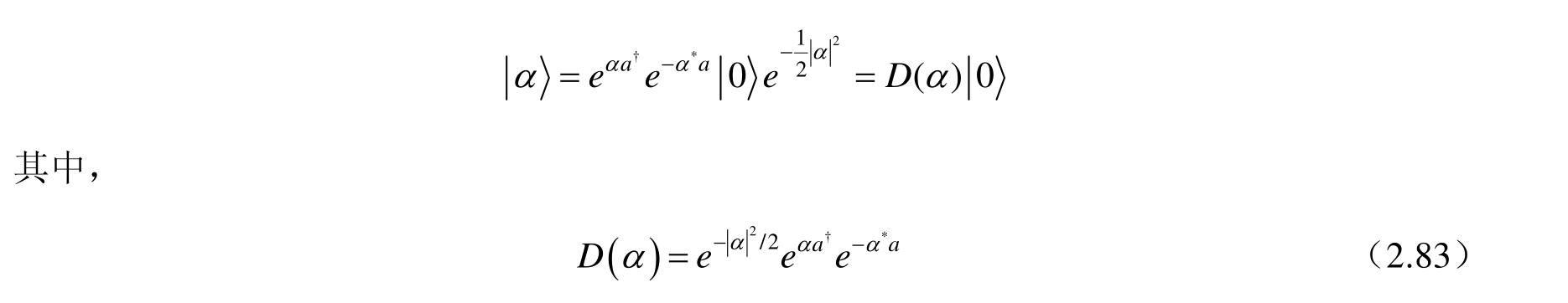 称为平移算符,因此相干态也被定义为平移后的真空态。考虑Baker-Hausdorf公式,可以得出D(α)的另一种形式: