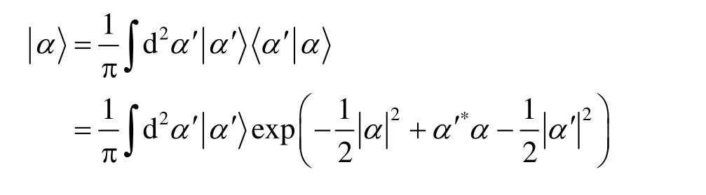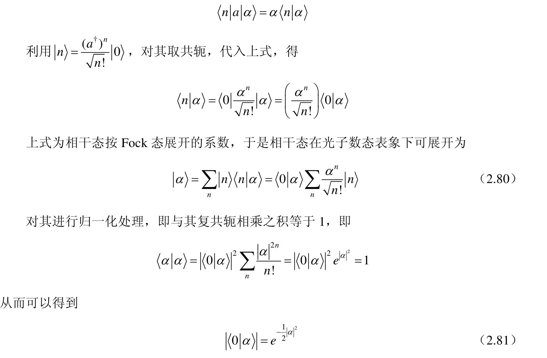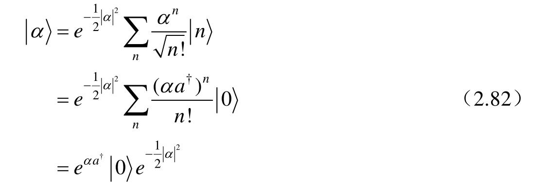 从上述定义可知,相干态被湮灭一个光子之后,其状态并不发生变化。由于湮灭算符a是非厄米算符,它不是可直接观测的物理量,因而其本征值应该为复数。下面推导相干态在Fock态表象下的表达式,将