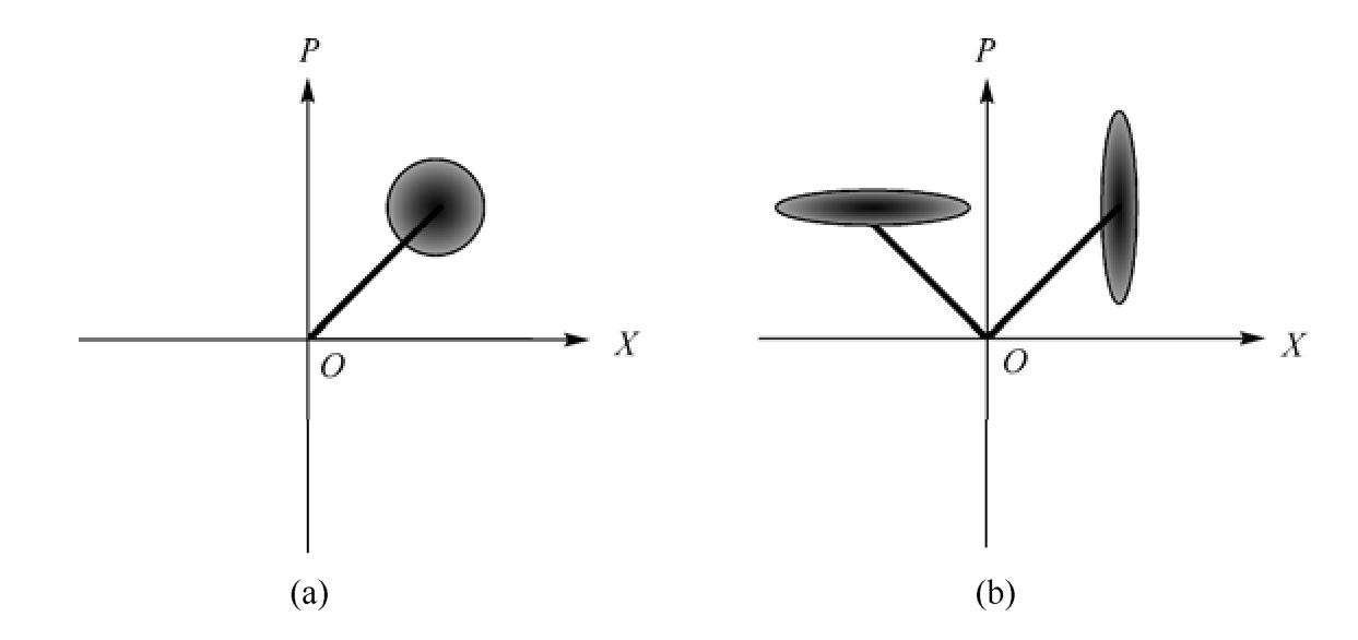 图2.2 相位空间中的(a)相干态和(b)压缩态