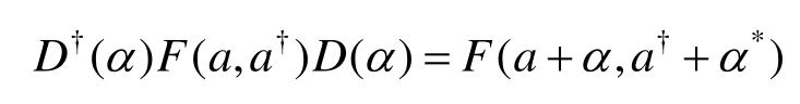 可见平移算符D(α)对a、a † 的作用就是使其平移了一个复数量。更一般地说,对于任何一个由a、a † 组成的算符函数F(a,a † ),D(α)都具有平移功能,即