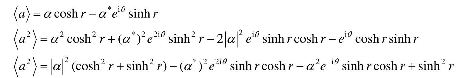 同样,考虑a,a + 在压缩相干态中的平均值分别为