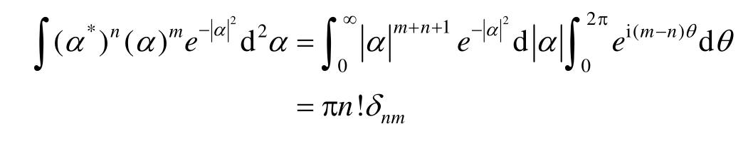 辐射场量子化后的一个重要结果就是共轭变量的不对易关系,而相干态就是其波包满足最小测不准关系的量子态,它是电场算符正频部分的本征态。相干态经探测和光电转换后表现出来的噪声谱称为散粒噪声极限(Signal Noise Limit,SNL),它是相干态固有的噪声,是经典噪声的极限。相干态是非厄米算符的本征态,利用这个态集可以构成非正交、超完备的表象,这种表象提供了一种将量子理论的运算过渡到c数函数积分的有效方法。