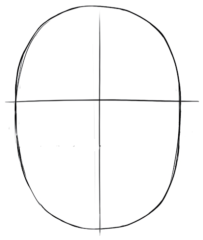 人物的脸型各色百态,要绘制人物的面部,先从建立椭圆和十字线开始。椭圆代表人物头部的主要轮廓,而十字线则是将面、眼、耳、口、鼻等五官连接起来,并确定它们大致位置的重要基准线。