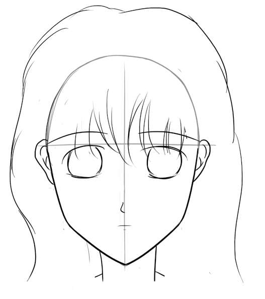 3以十字线为基准,为人物画眼、耳、口、鼻的轮廓,并画出头发。
