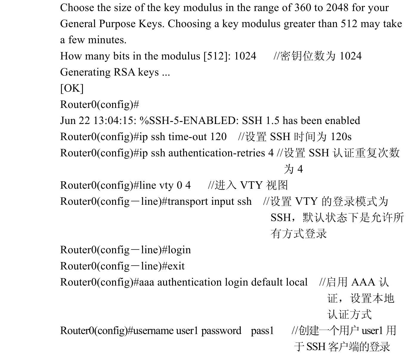 下面以CISCO路由器为例,讲解SSH配置的配置方法及过程。