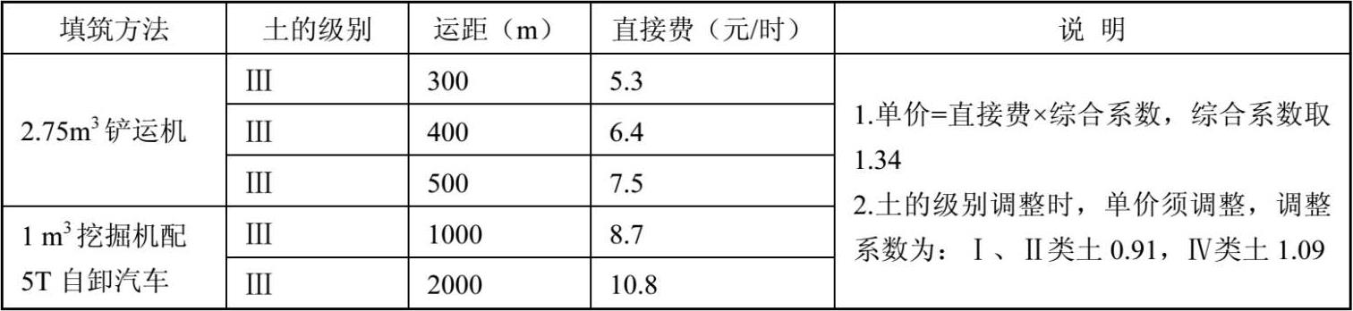 第一坝段填筑应以1m 3 挖掘机配自卸车的单价为基础变更估计。因为运距超过500m后,2.75m 3 铲运机施工方案并不经济合理。