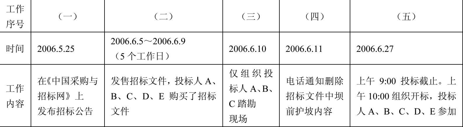 某地新建一水库,其库容为3亿立方米,土石坝坝高75m。批准项目概算中的土坝工程概算为1亿元。土坝工程施工招标工作实际完成情况如下表。