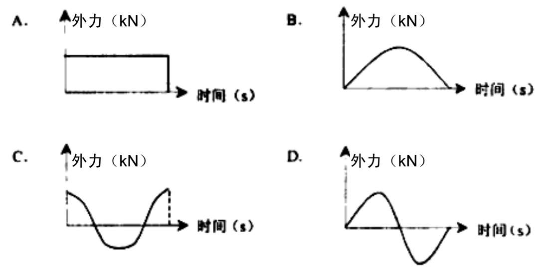 【解析】 夯击的作用力为瞬时动力,有瞬时脉冲作用,其大小随时间和落高而变化。如选项中B所示。