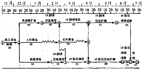上游翼墙及铺盖施工时,为加快施工进度,施工单位安排两个班组,按照上游翼墙Ⅱ→10→9→8→7→6和上游翼墙I→1→2→3→4→5的顺序同步施工。
