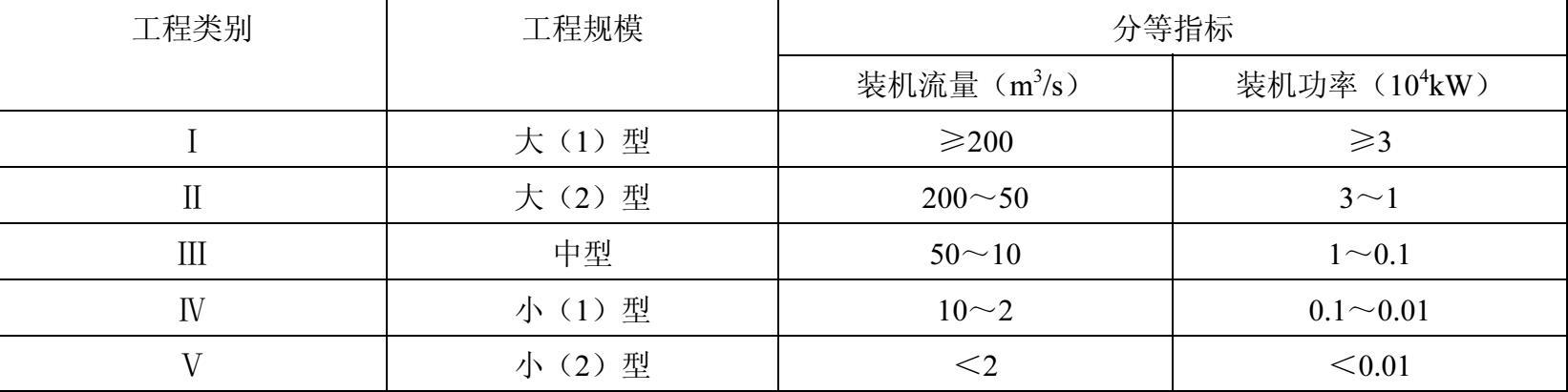 由上表可知,装机功率为12000kW,装机流量为150m 3 /s,该站的工程规模为大(2)型。
