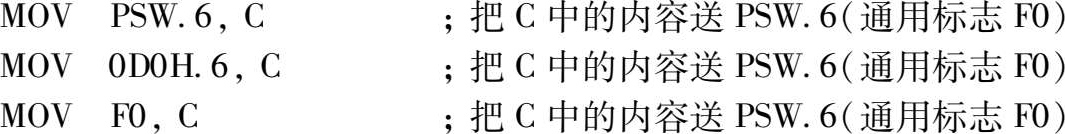 这 3条指令都是把C中的数据送到PSW.6(通用标志F0)。