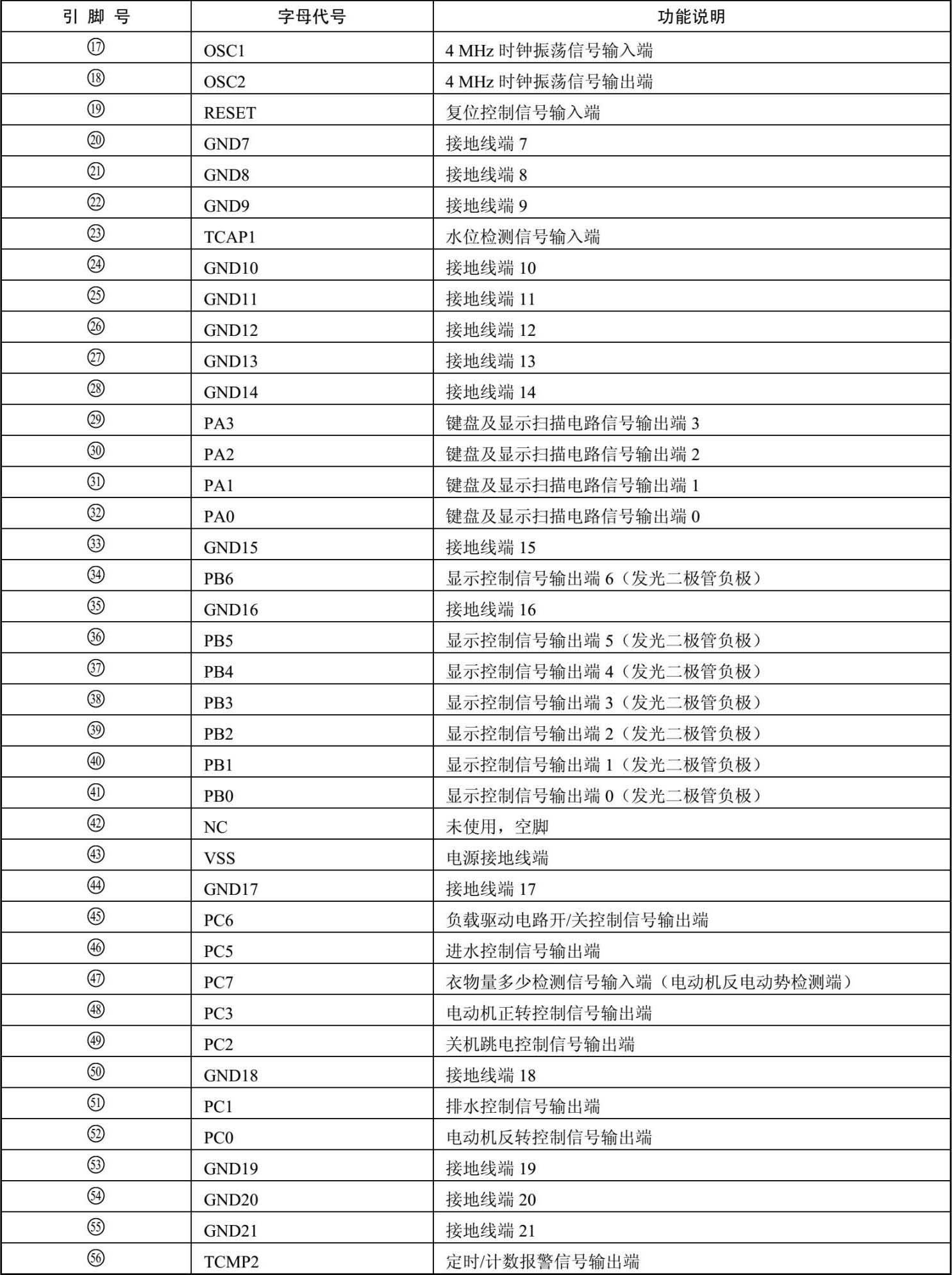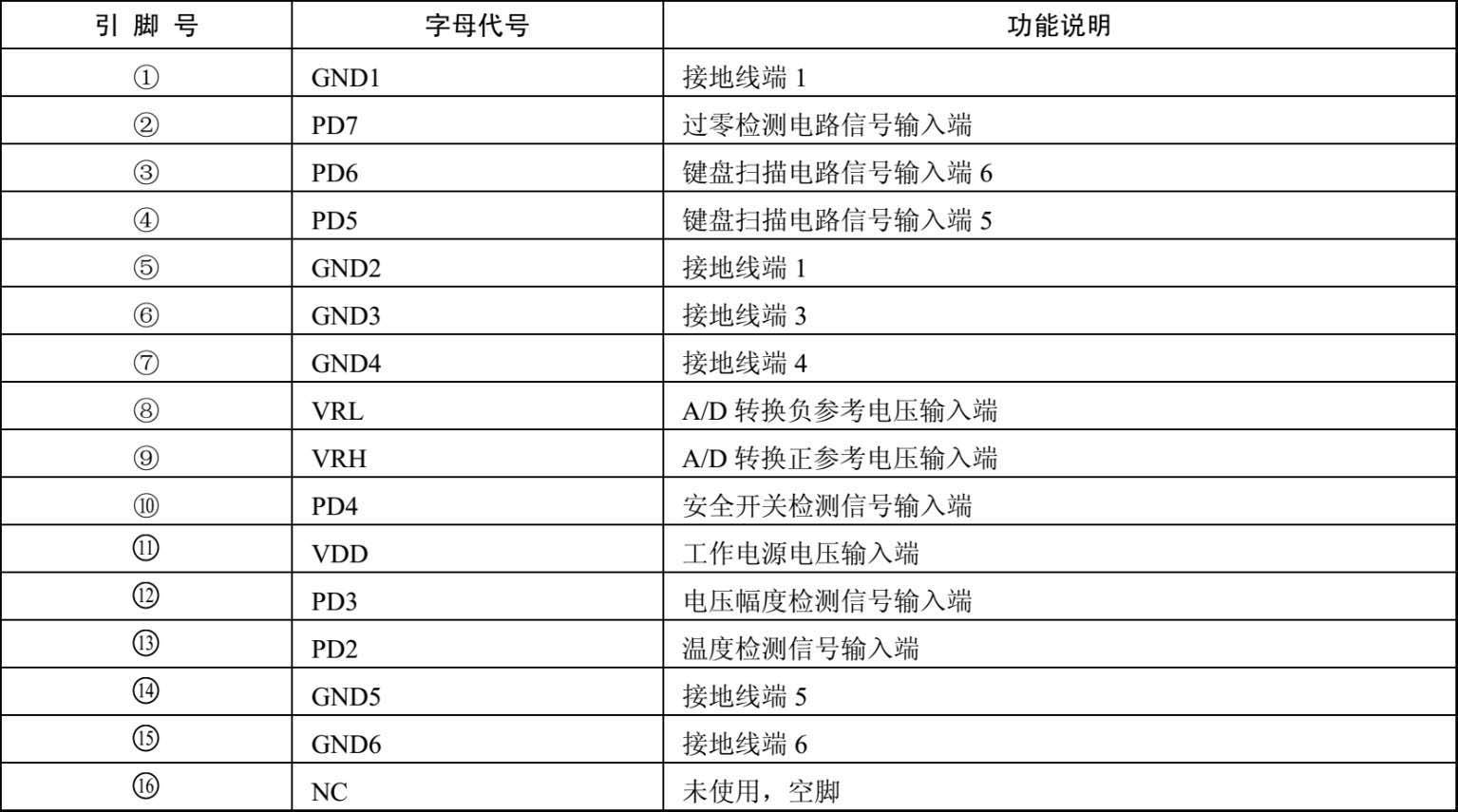 表1-1 微处理单片机集成电路MC68HC0586(IC1)各引脚功能说明