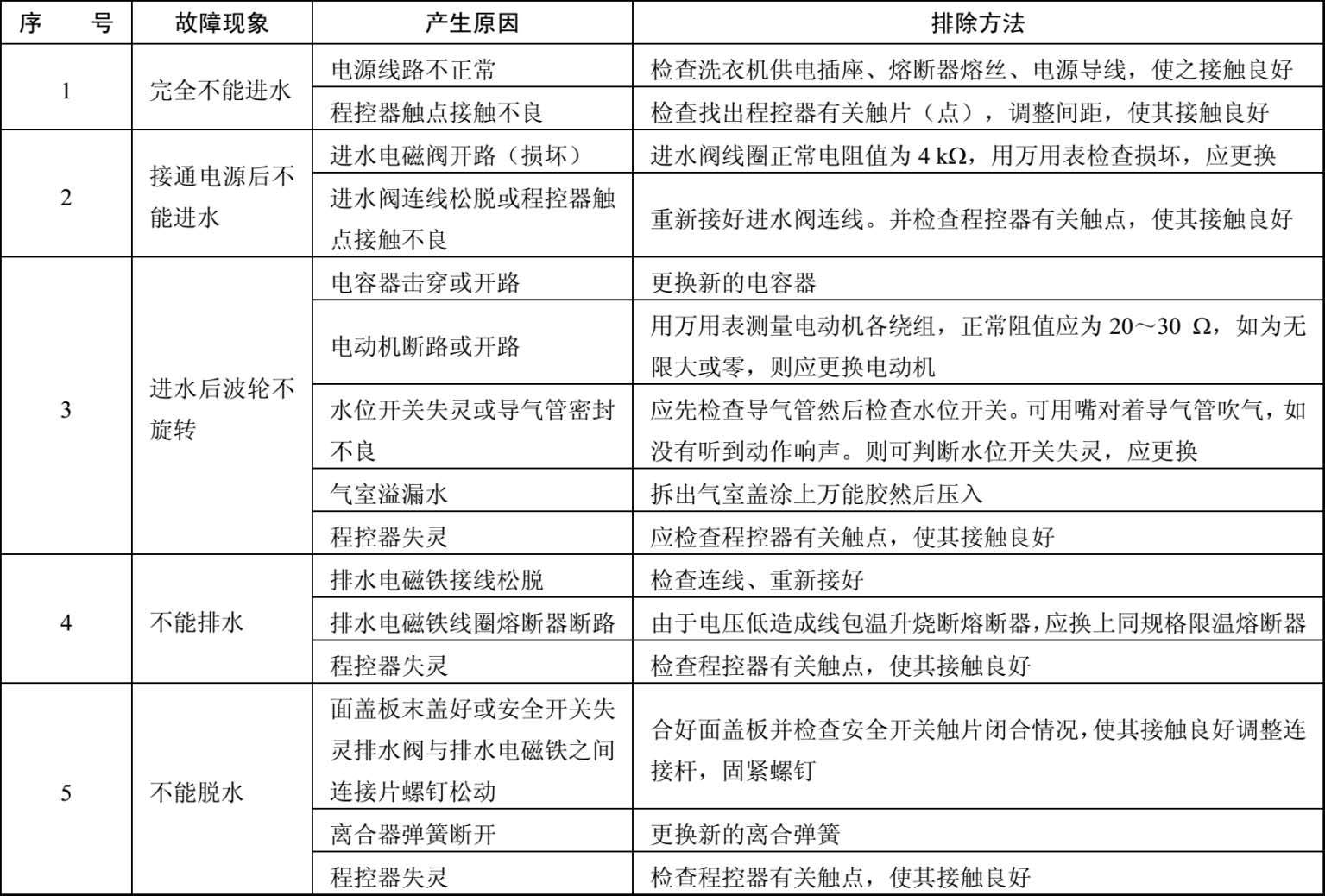 机械程控式全自动洗衣机常见故障速查与检修如表1-3所列,供快速检修故障时参考。