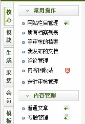 进入织梦后台,利用左侧菜单中的“核心”、“专题管理”功能就可以方便地建立和管理专题,如图3.26所示。