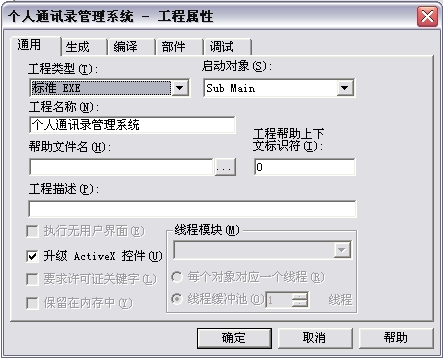 (1)选择“工程”/“个人通讯录管理系统属性”命令,将弹出“工程属性”对话框。