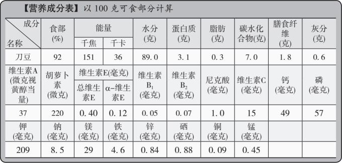 刀豆性平味甘,又称大刀豆、关刀豆、马刀豆,古称挟剑石,因其绿色嫩豆荚似刀形而得名,是长江流域及其以南地区栽培的一种豆科一年生缠绕草本植物的荚果。