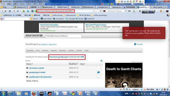 感兴趣的朋友,可以在浏览器中输入:http://sourceforge.net/projects/ganttproject/files,然后按Enter键,在打开的页面窗口中单击