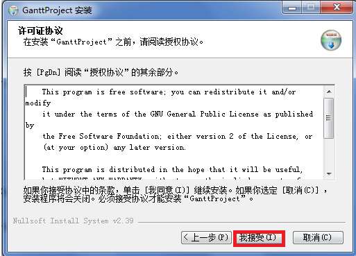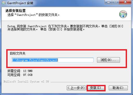 在弹出的对话窗口中,可以选择目标文件夹的位置(单击“浏览”按钮),也可以选择接受默认的设置“C:\Program Files\GanttProject”(如果您正在使用Windows 7操作系统,建议接受默认设置),然后,单击