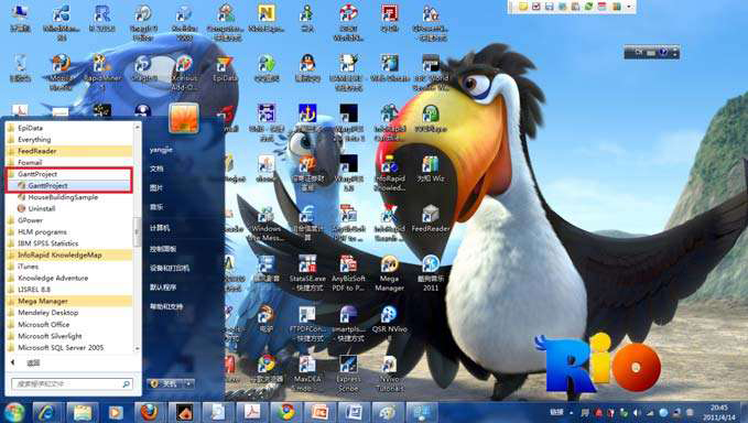 在桌面上单击左下角的Windows“开始”图标,在弹出的对话框中单击“所有程序”选项,在已安装的程序中找到并单击“GanttProject”,在弹出的下拉列表中单击“GanttProject”(见图3.9),则正式启动该程序。